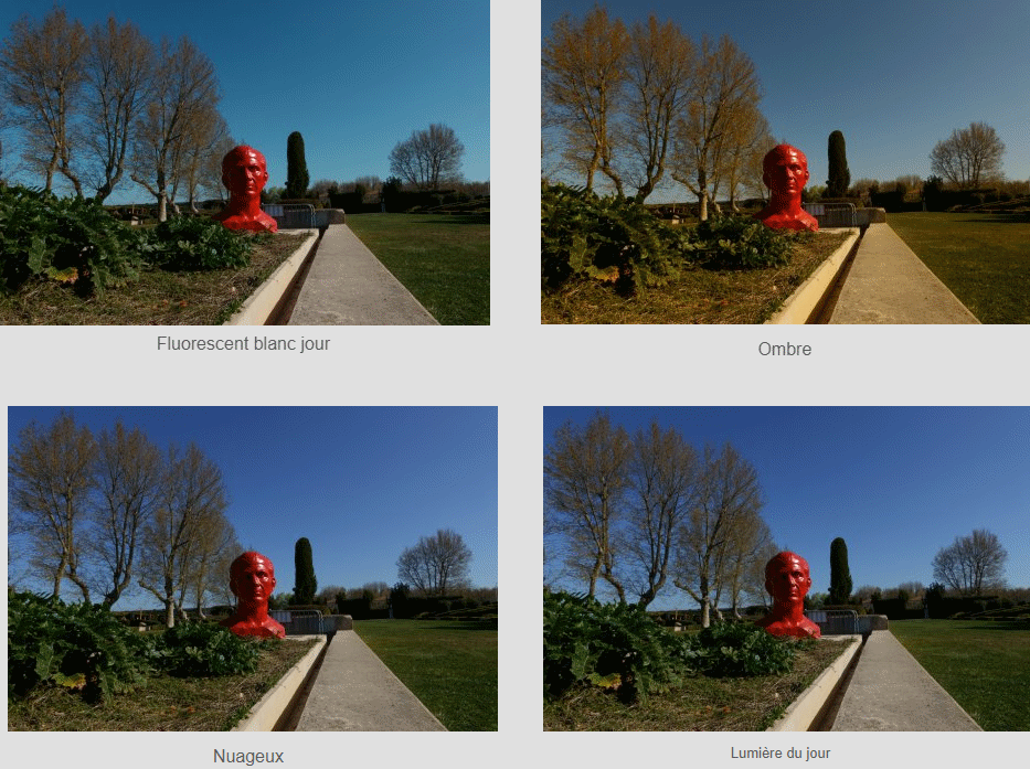 Sur nos appareils photo le réglage de la balance des blancs permet de corriger la dominante de couleur.