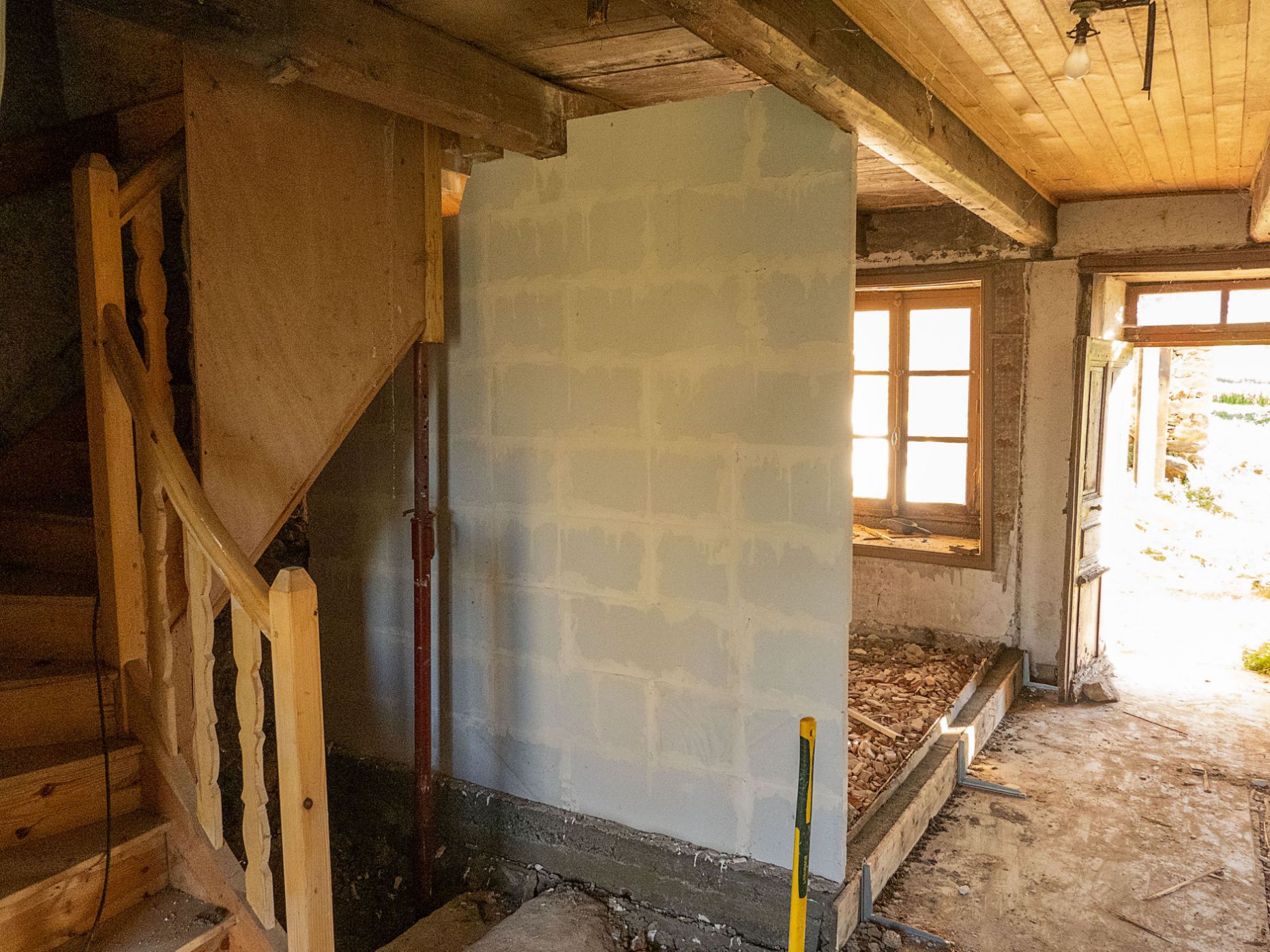 Sur un pignon de la maison se trouve un vieux four à pain dont l'entrée est dans la cheminée située dans ce qui sera la pièce à vivre.