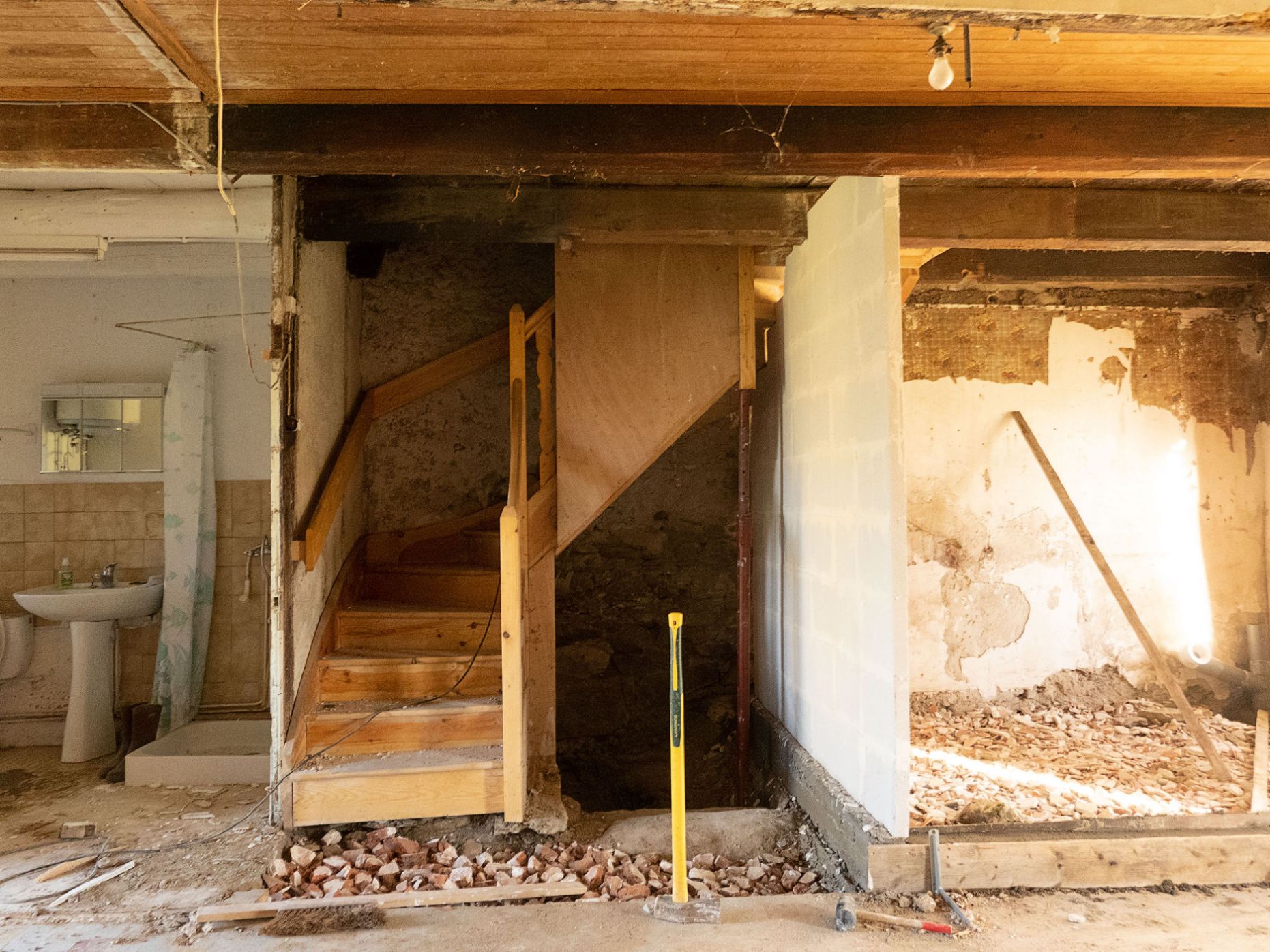 Construction de la nouvelle cloison buanderie en Siporex sur semelle coulée en mortier.
