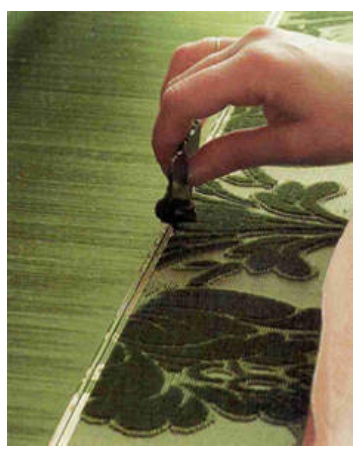 La chaîne poil, après avoir produit ces différents effets àl'endroit du tissu est lié à l'envers, masse tous les 4 coups.