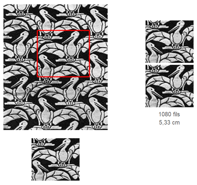 soit 5 cm x 15 poils/cm = 75 fils au rapport de dessin