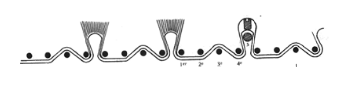 Le corps de maillons du poil est donc placé près du peigne ce qui permettra unmeilleur dégagement des fils poil lors de leur évolution (les fils poils sont peu tendus).
