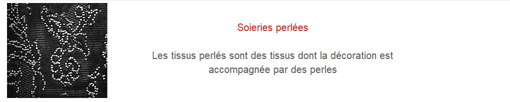 Les soieries avec des perles tissées remontent à une invention lyonnaise de 1885.