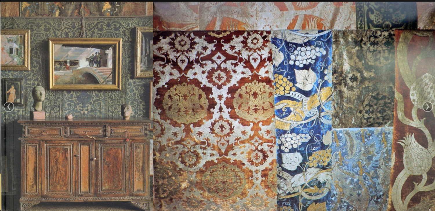 Fortuny a aussi inventé de nouvelles méthodes de teinture textile et des procédés d'impression sur tissus, en reproduisant la profondeur, les couleurs et la beauté des tapisseries, des brocards et des velours anciens.