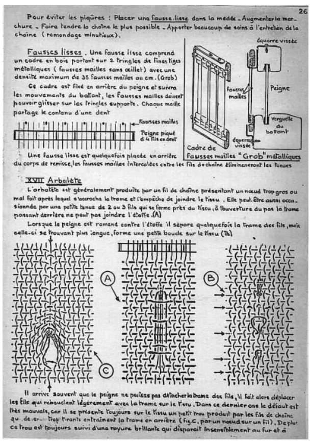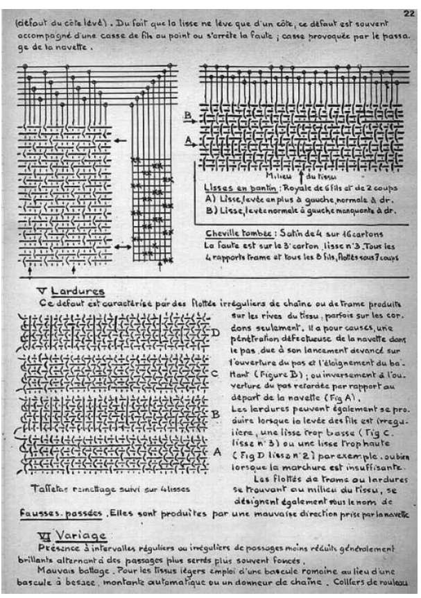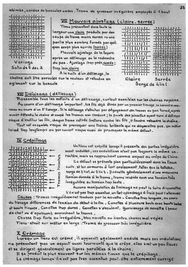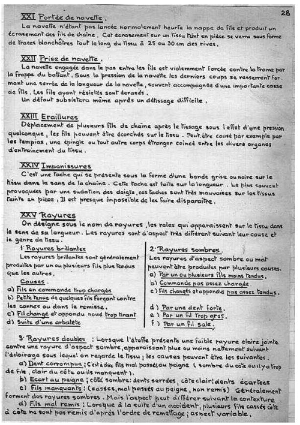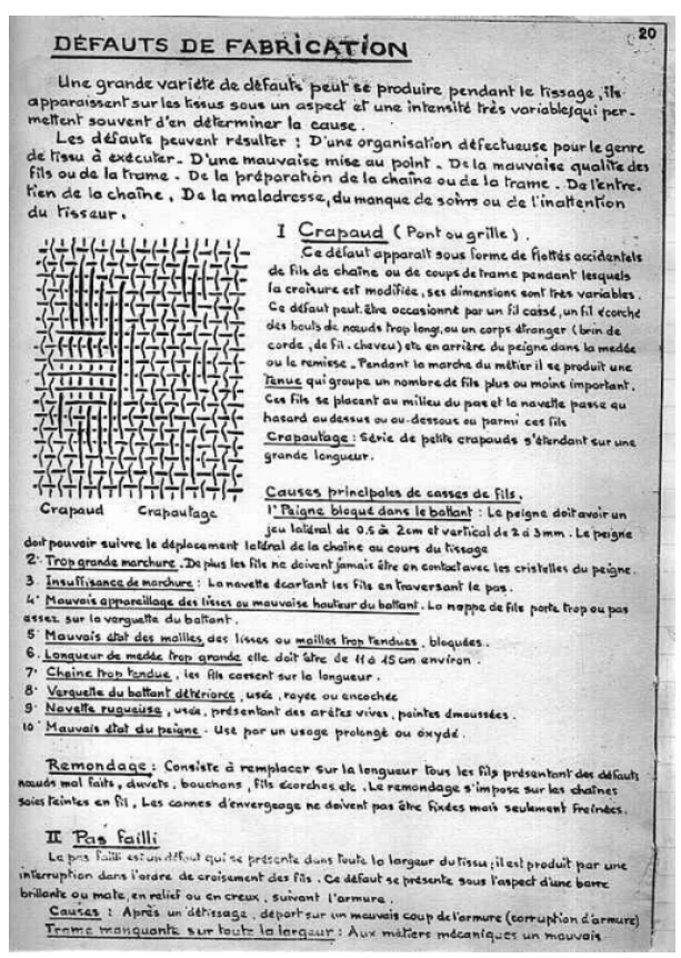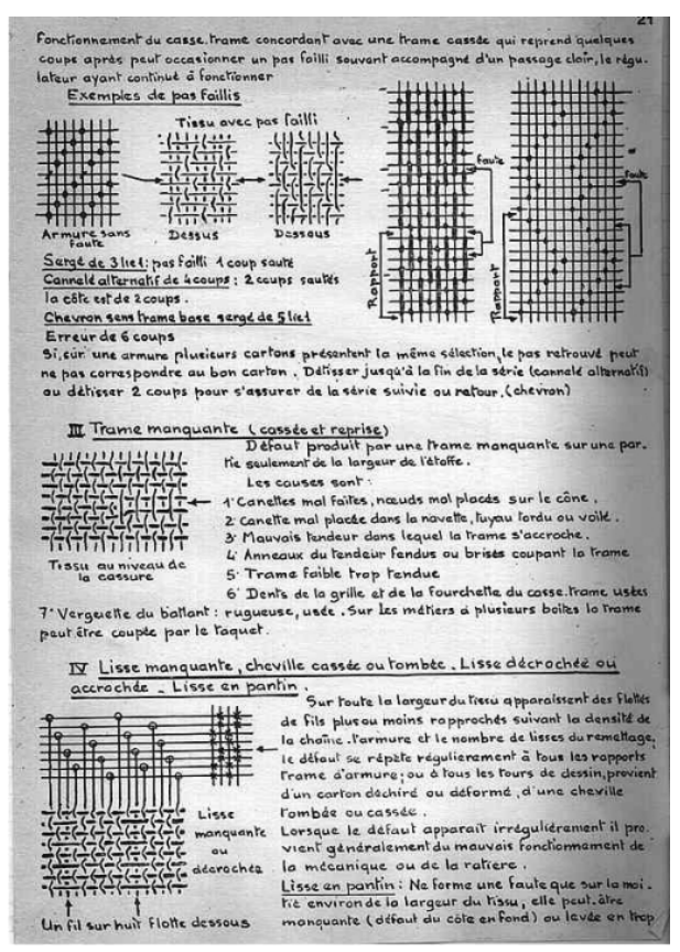 Le cours manuscrit a été recopié par nos soins.Ce cours de tissage sur métiers lyonnais à bras a été utilisé jusque dans les années 1980.