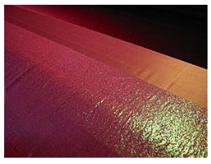Il est utile, lors du tissage de cette étoffe, d'enrouler, autour du rouleau, des feuilles de papier lisse, entre les superpositions du tissu; sans cette précaution, le frottement de la matière sur elle-même et la tension de la pièce sur le rouleau imprimeraient une sorte de moiré. Cette étoffe est recherchée pour robes et chapeaux de dame.