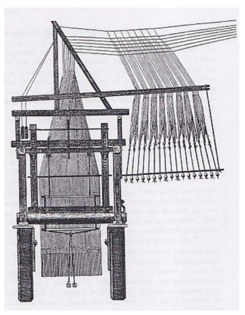 Ce genre de métier existait au XVIII° siècle, mais il ne pouvait convenir à tous les tissus car le nombre de lacs était nécessairement limité.