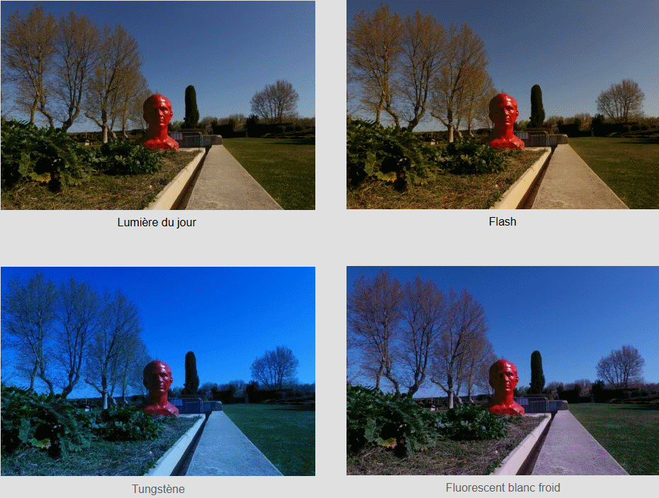 Sur nos appareils photo le réglage de la balance des blancs permet de corriger la dominante de couleur.