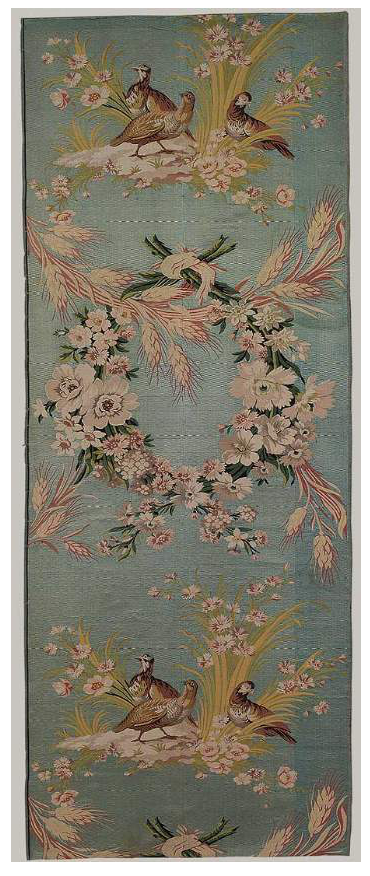 Sous Louis XVI, la réduction s'accentue, les bouquets liés de cordelières sont placés entre des bandes verticales. Philippe de Lasalle se distingue par ses remarquables tissus à grands motifs destinés aux palais français et étrangers.