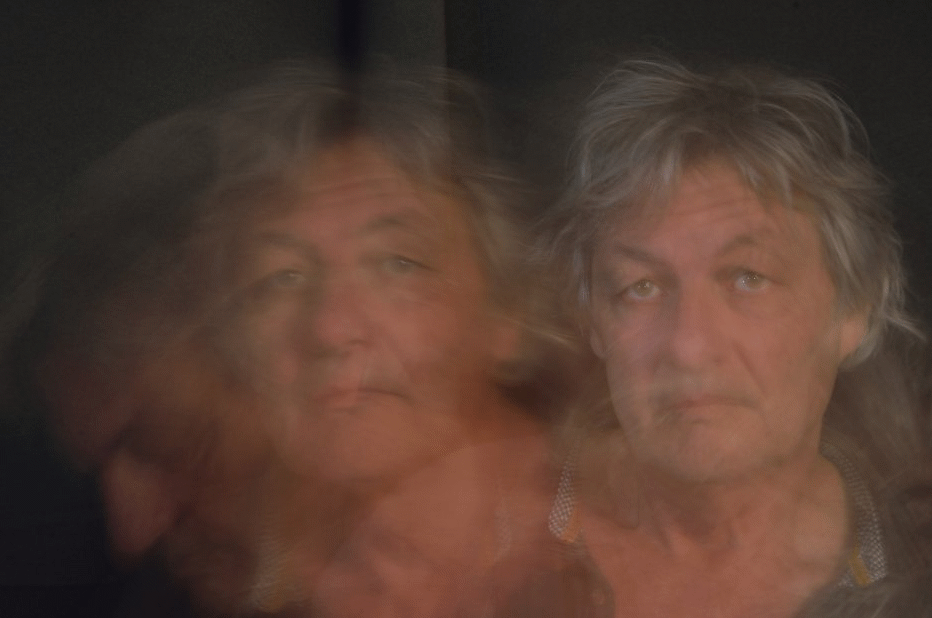 Lorsque l'appareil est immobilisé sur un trépied et qu'un élément bouge dans l'image, le photographe peut suggérer le mouvement en jouant sur le temps d'exposition. Voici un bon exemple de cette technique de bougé. Fixé sur son trépied, le temps de pose a été de 8 secondes, ce qui explique la triple apparition du visage qui a marqué les trois poses en partageant à peu près les 8 secondes.