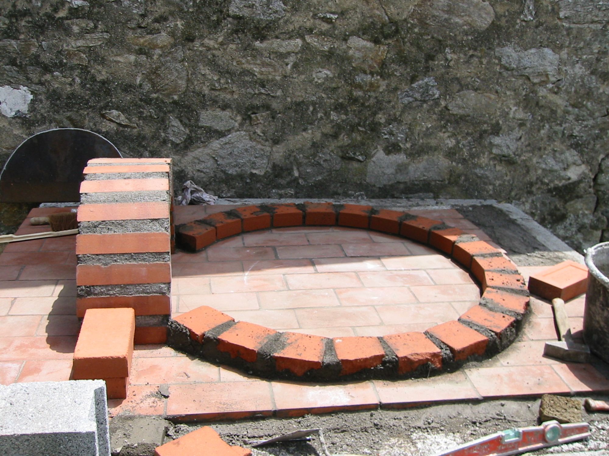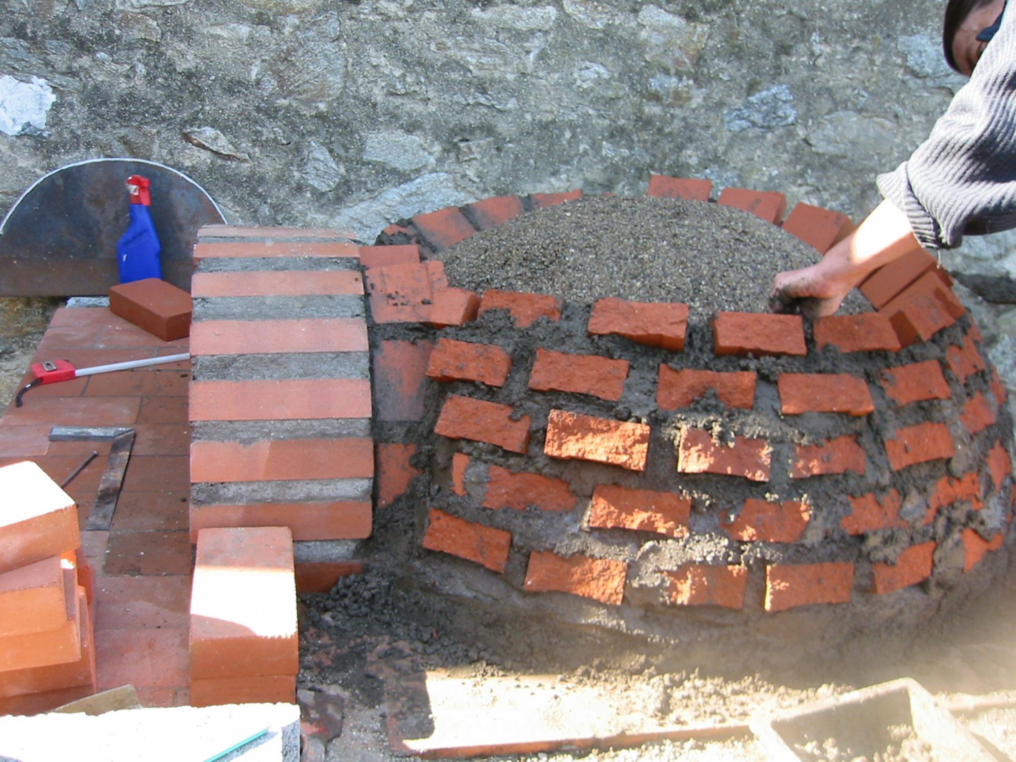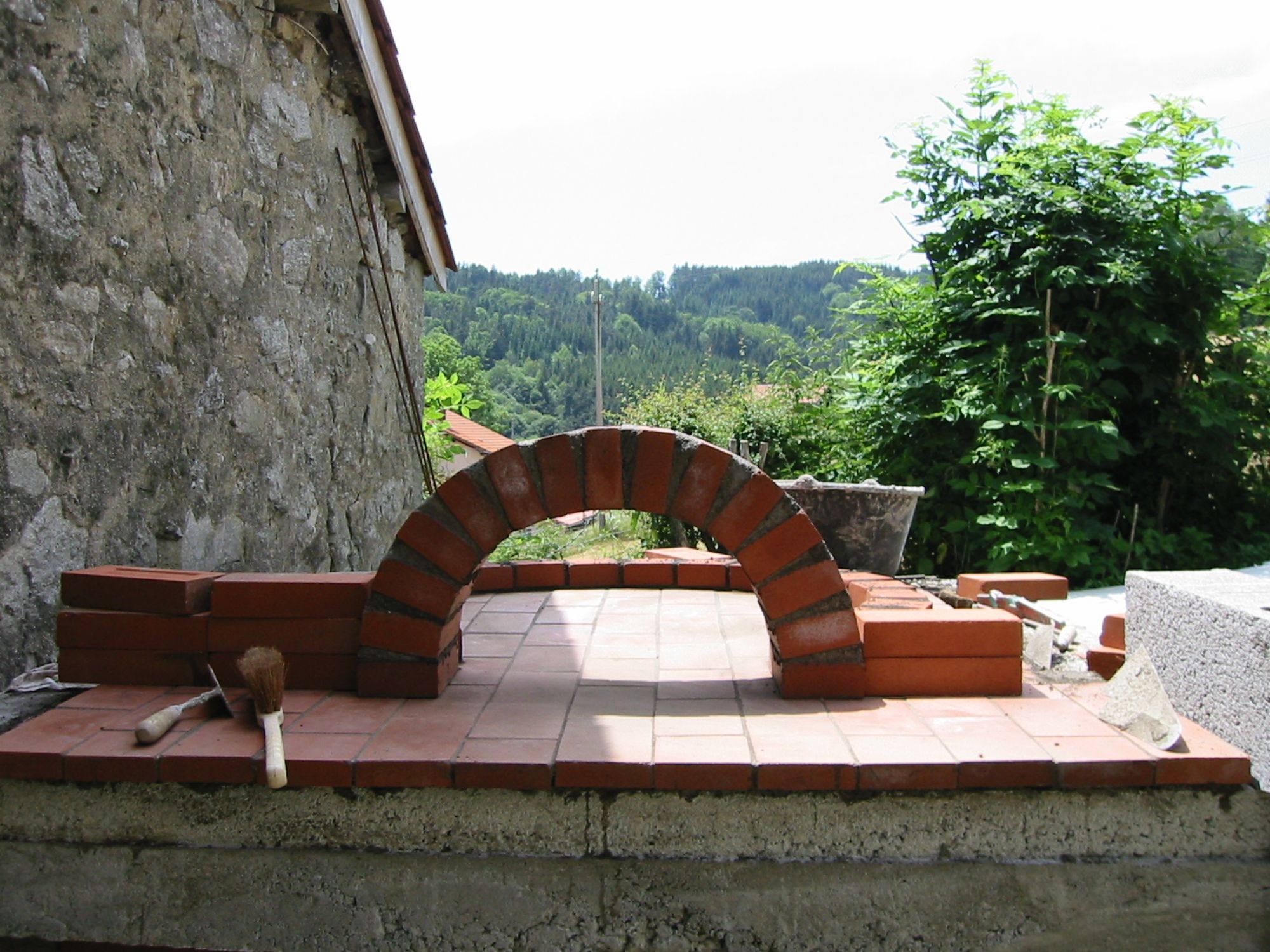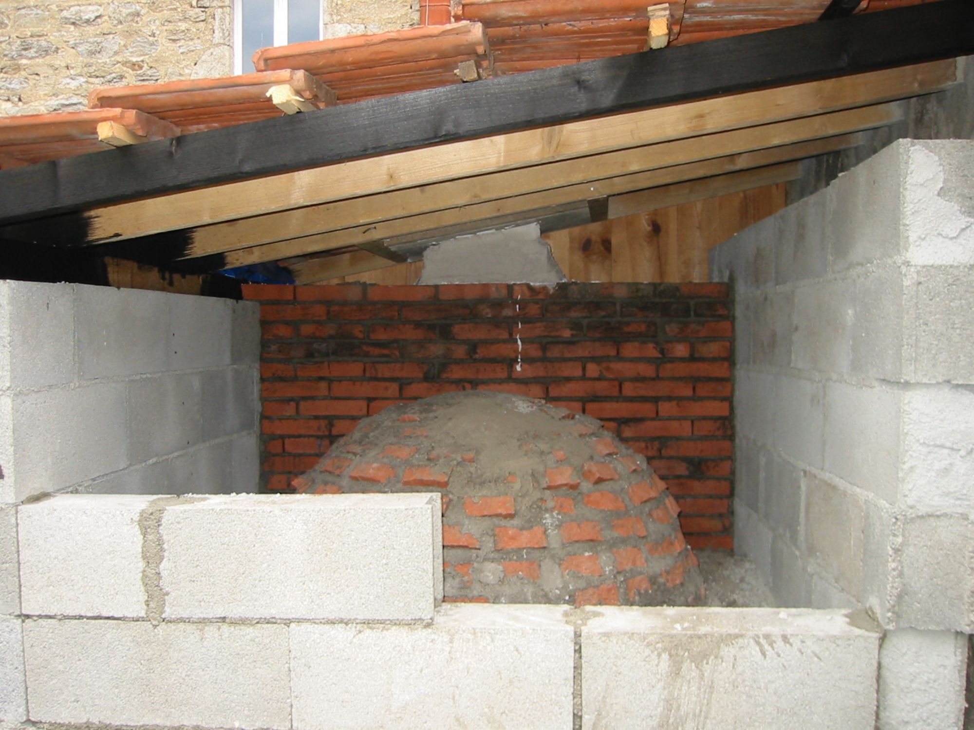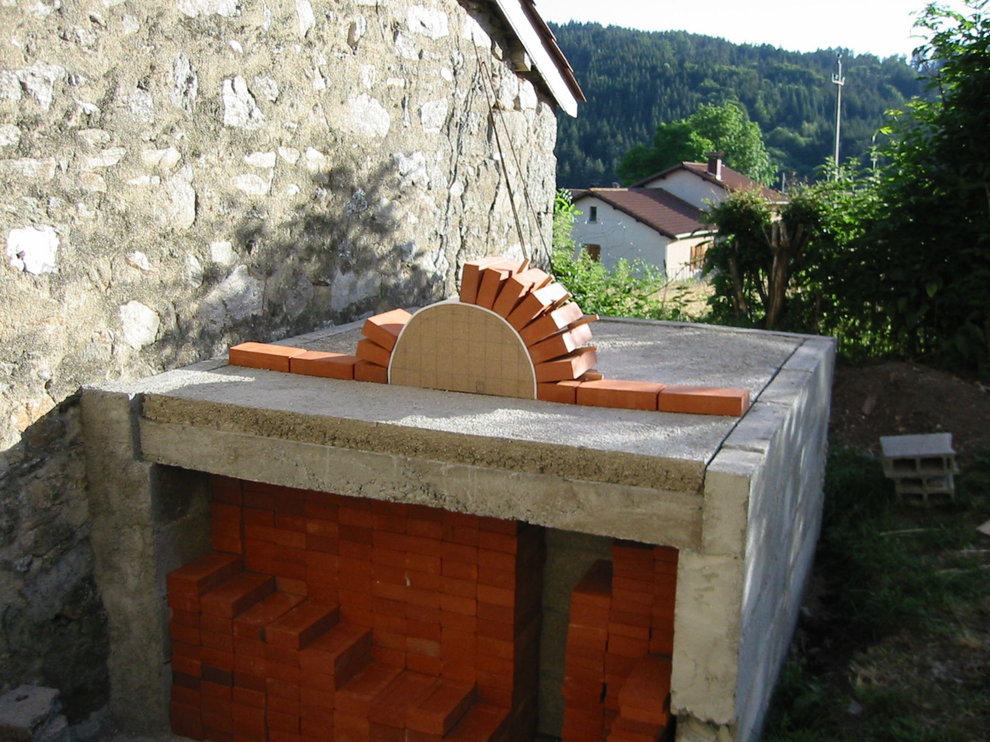 Voûte : Construisez la voûte en utilisant des briques réfractaires. Commencez par poser les briques à plat pour former le périmètre, puis montez progressivement en suivant la courbe de la voûte.
