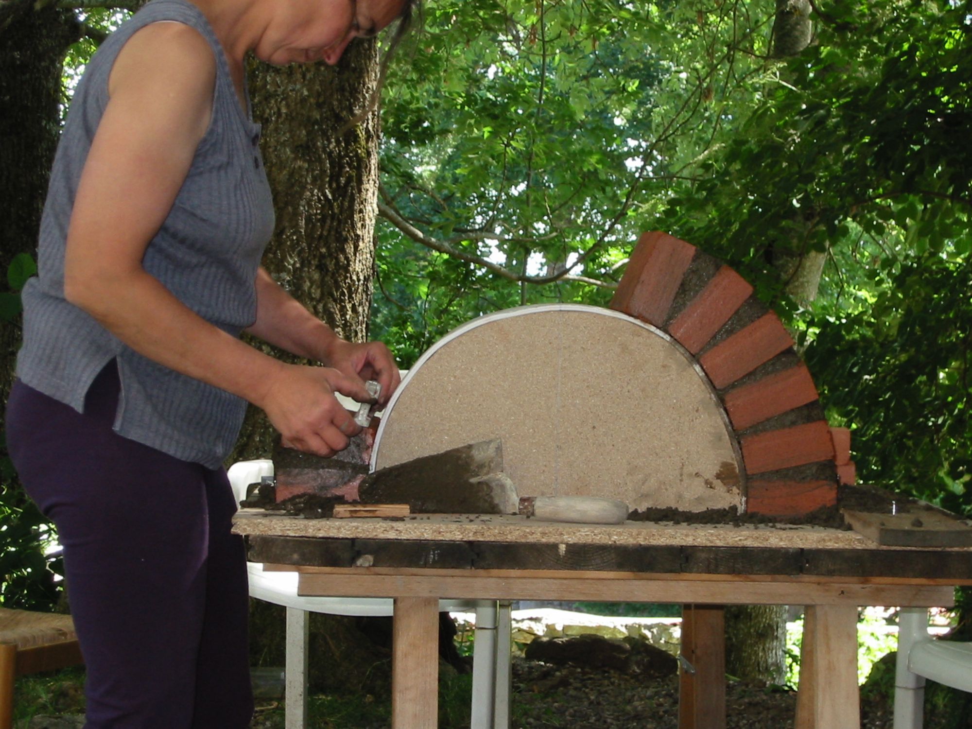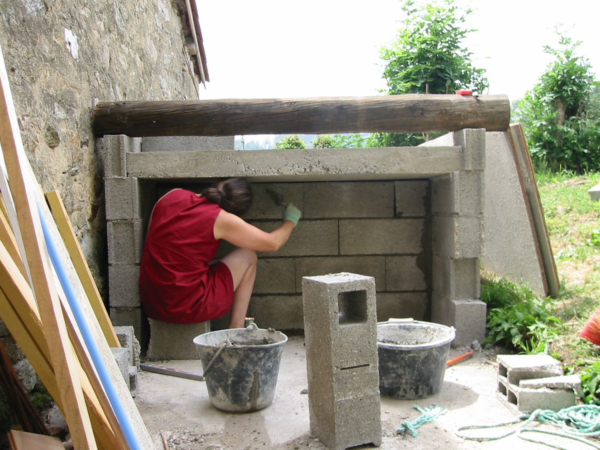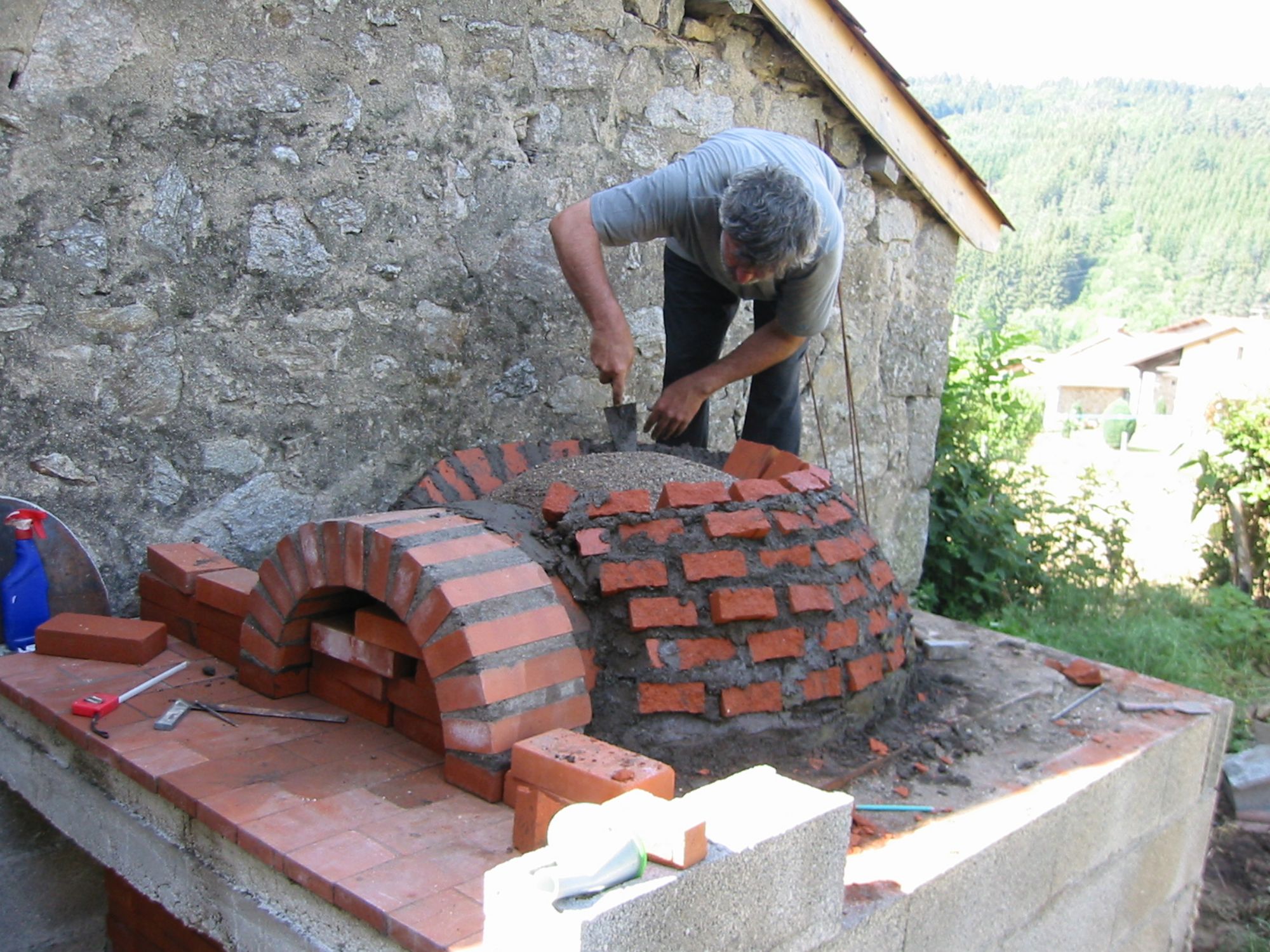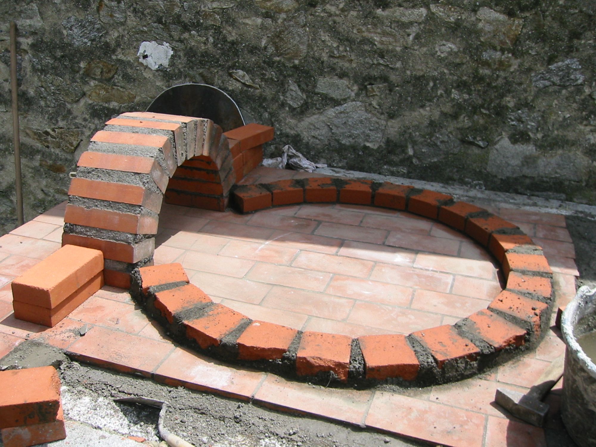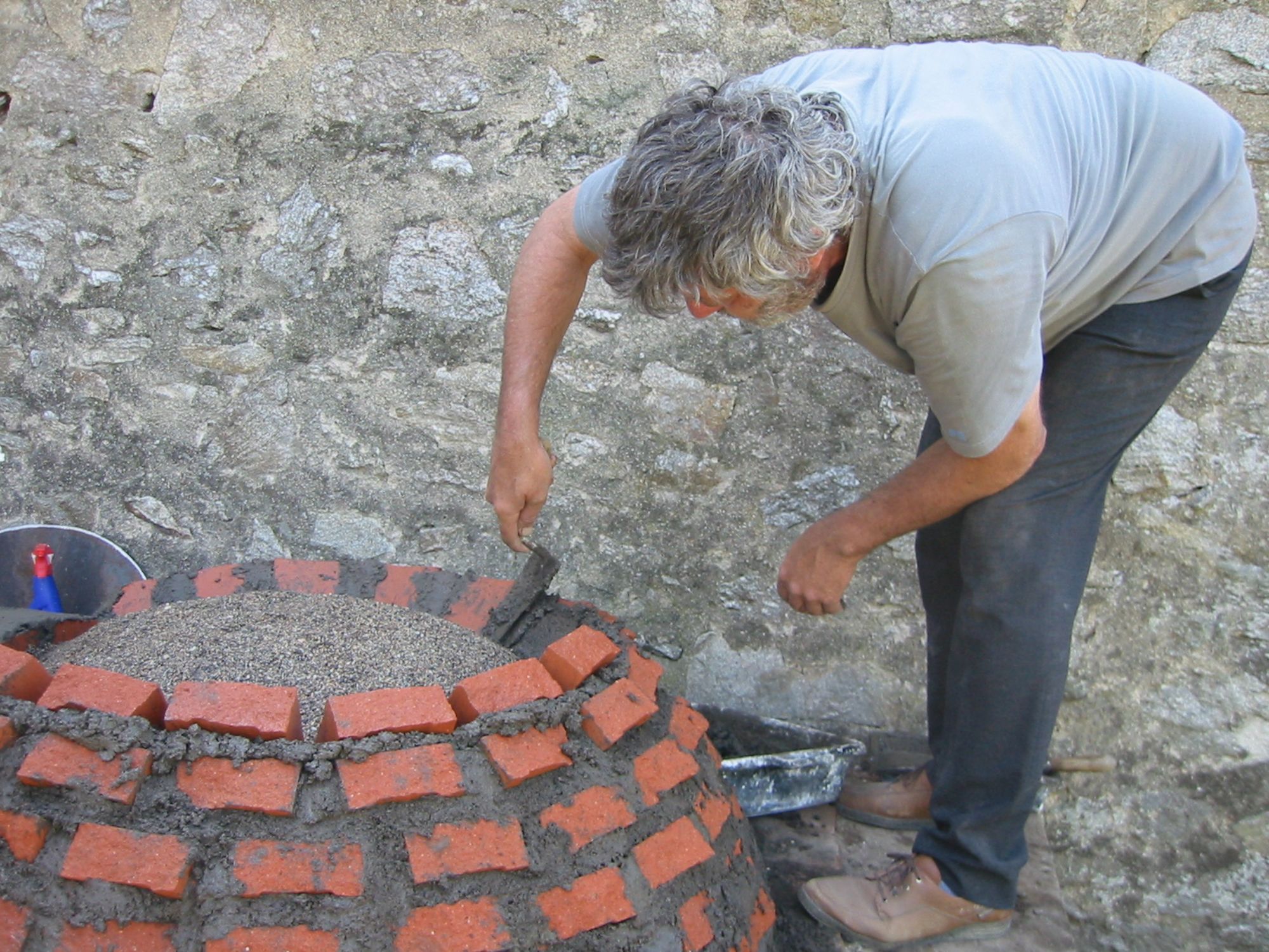 Voûte : Construisez la voûte en utilisant des briques réfractaires. Commencez par poser les briques à plat pour former le périmètre, puis montez progressivement en suivant la courbe de la voûte.