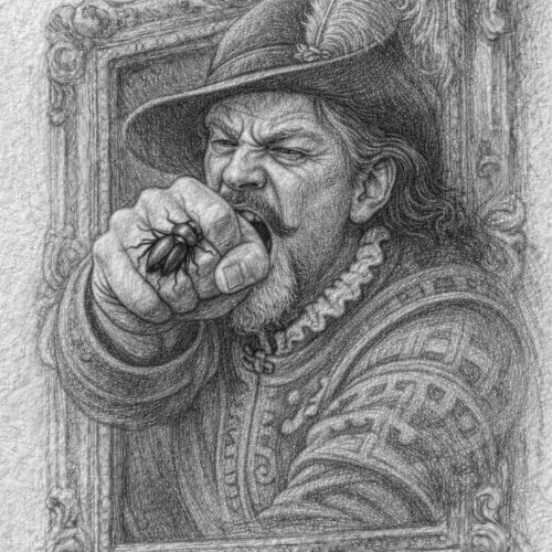 Un coléoptère aquatique envahissant voletait autour du cadre, tourbillonnait en vrille et bourdonnait à l’envi, émettant une stridulation et un frottement d’élytres insupportables. Éminemment agacé, le Prince lançait alors un bras rageur à l’extérieur du cadre, dans la salle à manger. Sa main courroucée se refermait comme un piège sur le misérable insecte. -