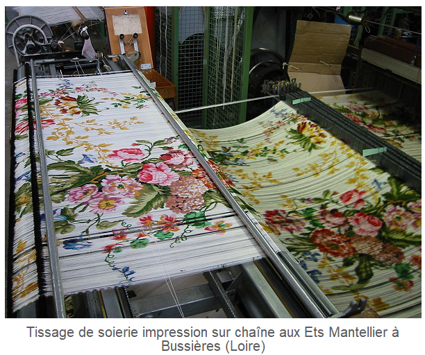 C'est une technique tout à fait originale puisqu'elle est intégrée en plein milieu du processus de tissage, contrairement aux autres techniques d'impression sur tissu comme l'impression au rouleau ou l'impression à la planche qui sont des techniques séparées qui interviennent en aval, c'est à dire après le tissage et ne concernent plus du tout ce dernier.