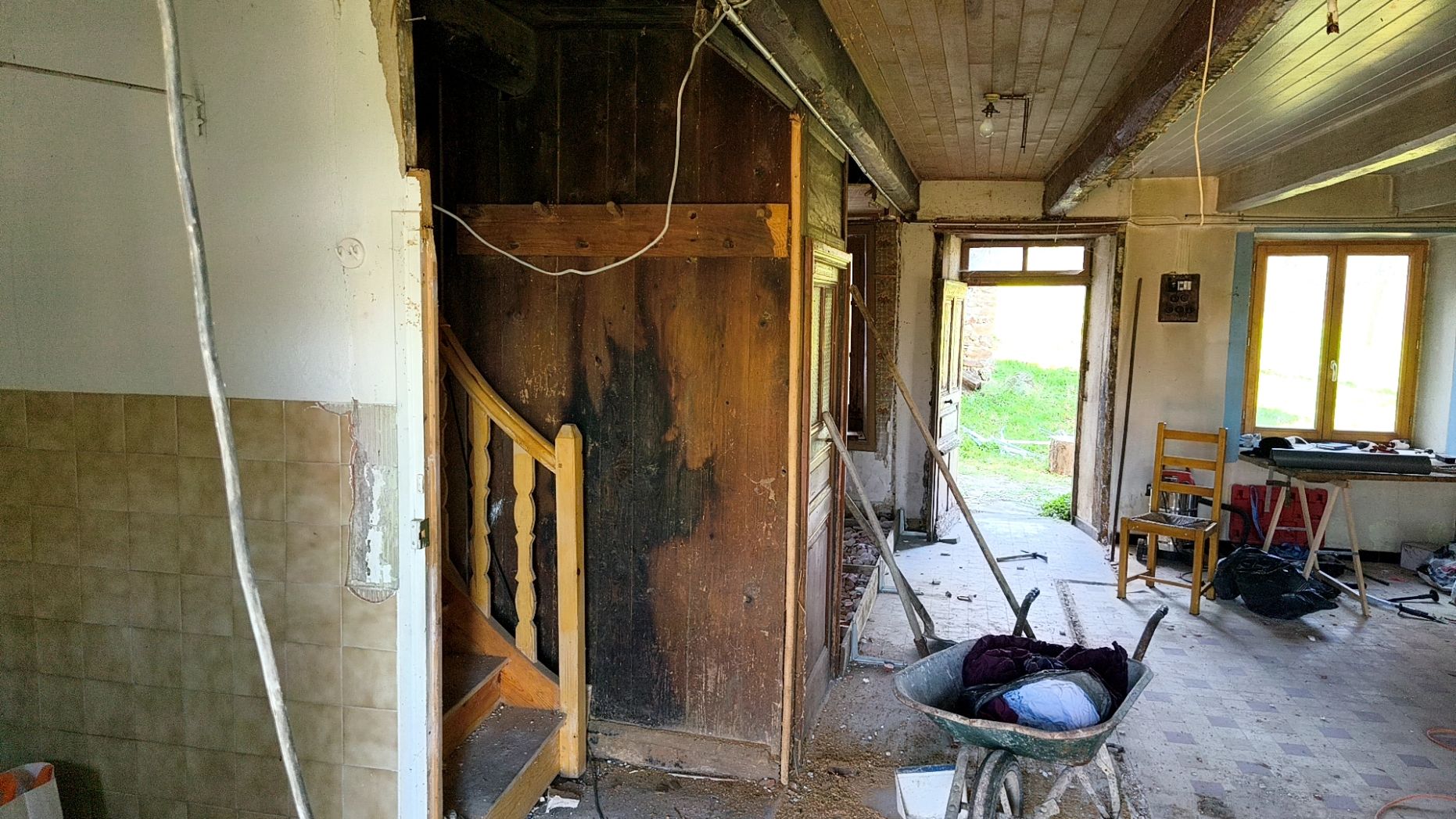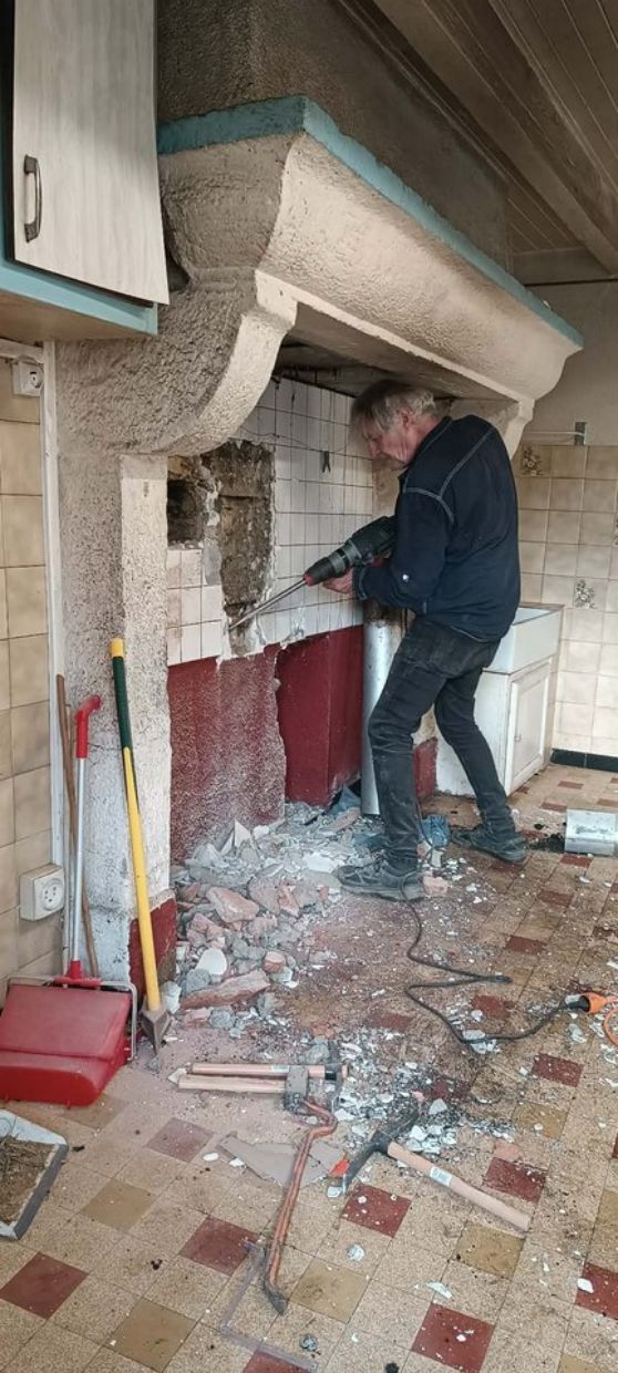 Sur un pignon de la maison se trouve un vieux four à pain dont l'entrée est dans la cheminée située dans ce qui sera la pièce à vivre.
