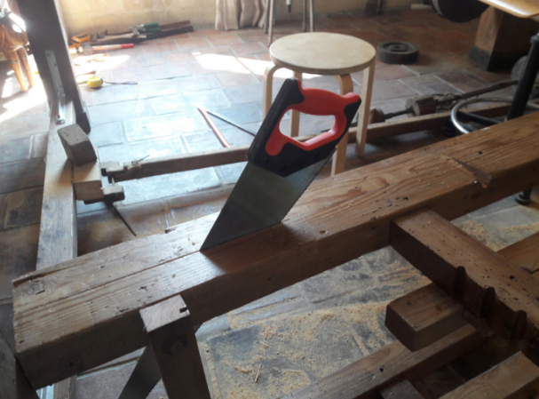 J'ai fabriqué la traverse arrière basse qui manquait au métier.