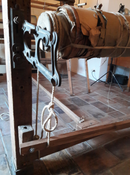 Ce métier possède un système d'enroulement dit "à savoyard". Le savoyard est une poulie de 40 cm