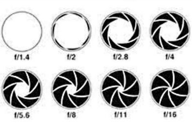 2- Le diaphragme est un élément situé dans l’objectif, composé de lamelles mobiles réglables permettant d’augmenter ou diminuer l’ouverture par laquelle la lumière extérieure entre dans l’appareil. Le schéma ci-dessous montre 8 ouvertures différentes : 1.4, 2, 2.8, 4, 5.6, 8, 11 et 16. Il peut en exister d’autres suivant les modèles d’appareils.