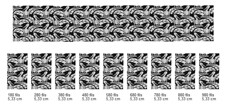 Si notre dessin est carré (hauteur de 5.33 cm), on aura 5.33 cm x 15 fers x 2 cartons = 160 cartons