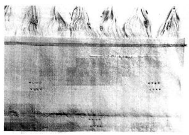 La partie supérieure des dents se termine par un arrondi de 17 mm pour terminer en pointe, la pointe tournée sur le devant du peigne, coté tisseur.