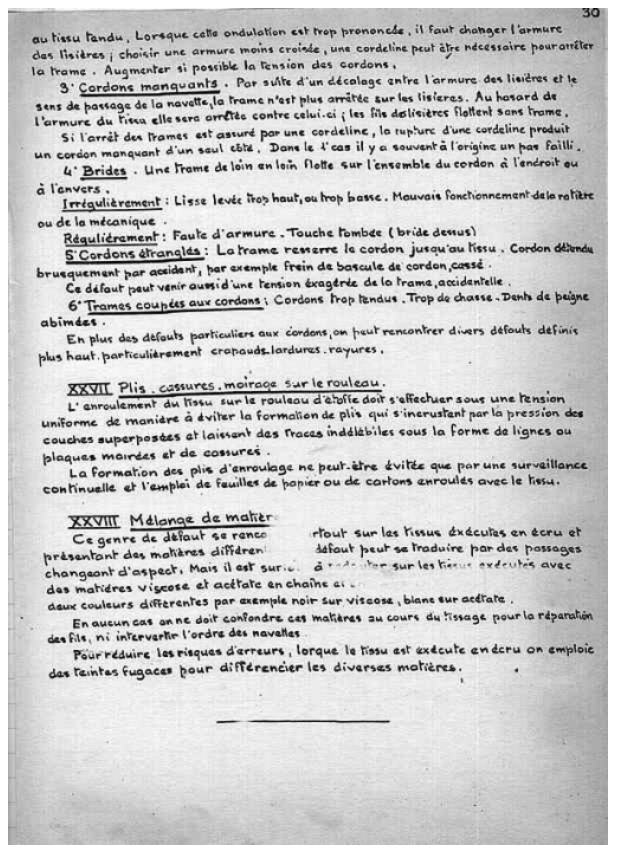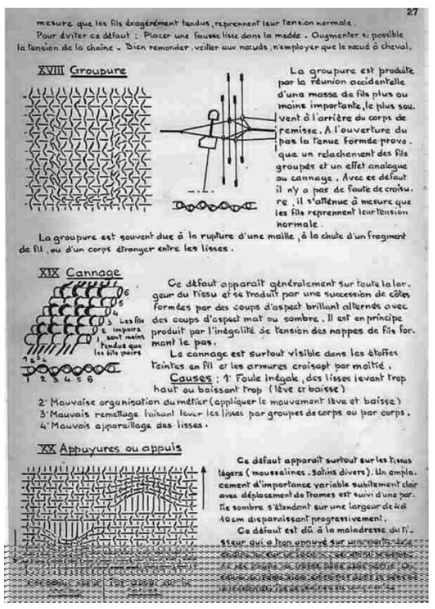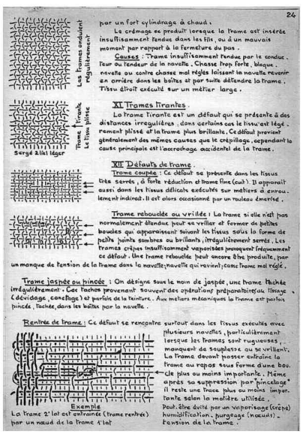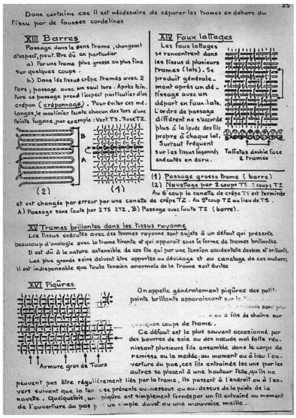 Le cours manuscrit a été recopié par nos soins.Ce cours de tissage sur métiers lyonnais à bras a été utilisé jusque dans les années 1980.