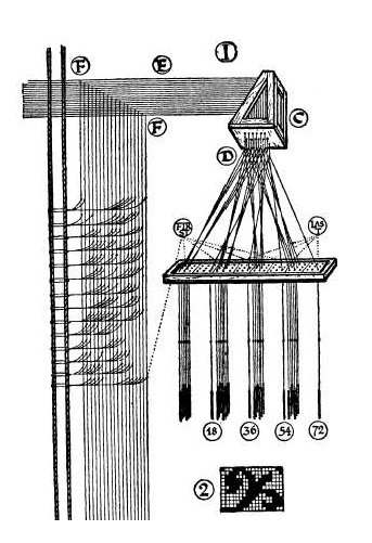 Nous allons donc ici remédier à cette carence en nous appuyant sur les croquis de l'excellent auteur anglais qu'est Luther Hooper, tirés de deux de ses ouvrages : "Silk, its production and manufacture", et "The new draw-loom", paru à Londres en 1932.