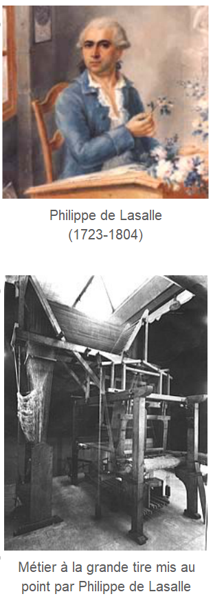 Philippe de Lasalle présenta son métier à la grande tire qui apporta de grands perfectionnements au métier à la tire traditionnel.