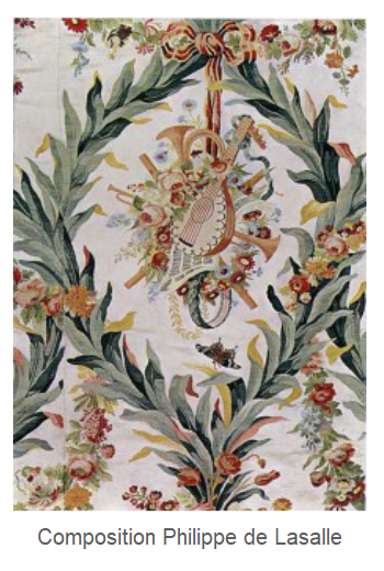 Sous Louis XVI, la réduction s'accentue, les bouquets liés de cordelières sont placés entre des bandes verticales. Philippe de Lasalle se distingue par ses remarquables tissus à grands motifs destinés aux palais français et étrangers.