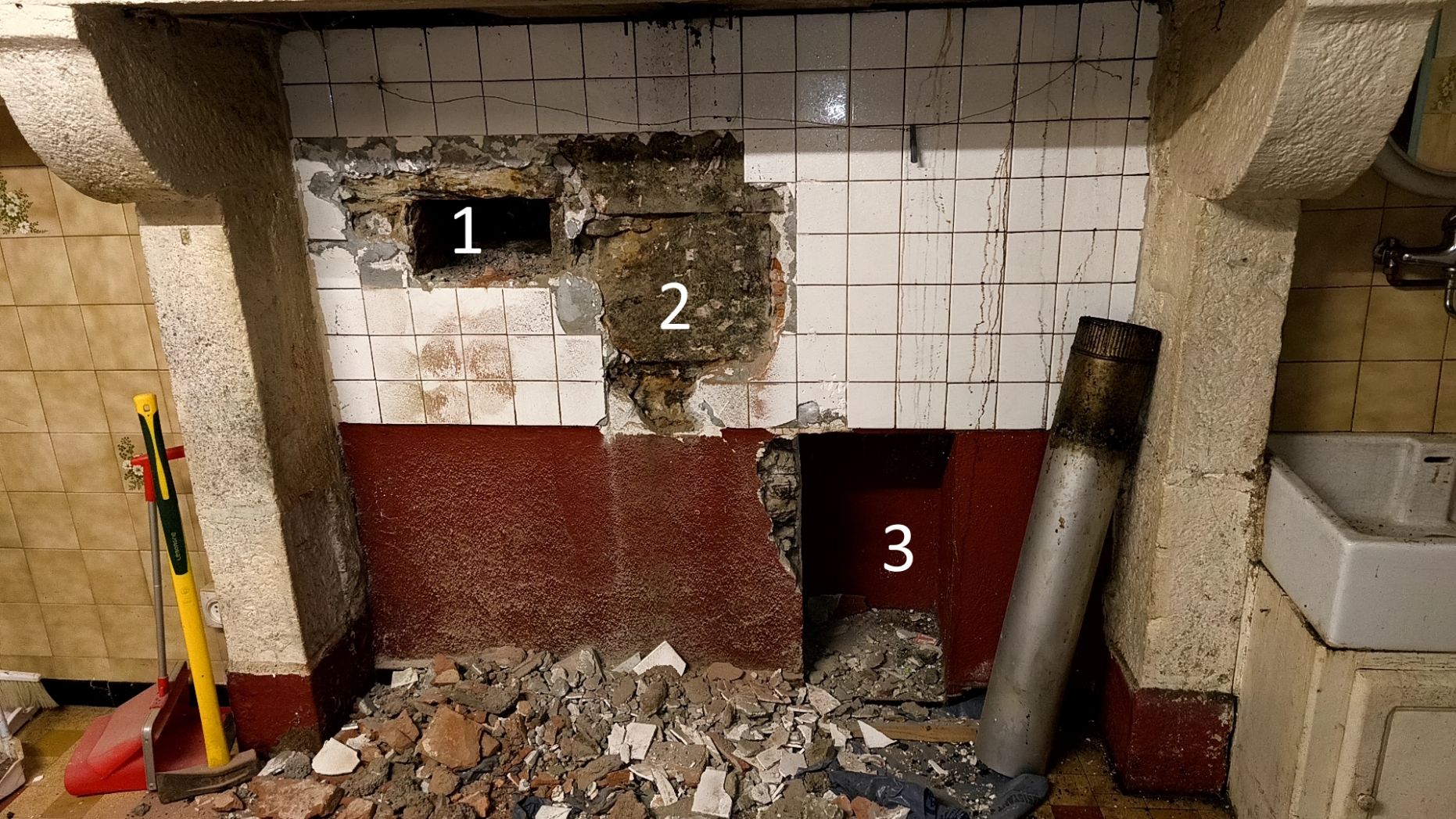 1 - Une niche 2 - Sans doute l'entrée du four, comdamnée par cette grosse pierre 3 - Une seconde niche