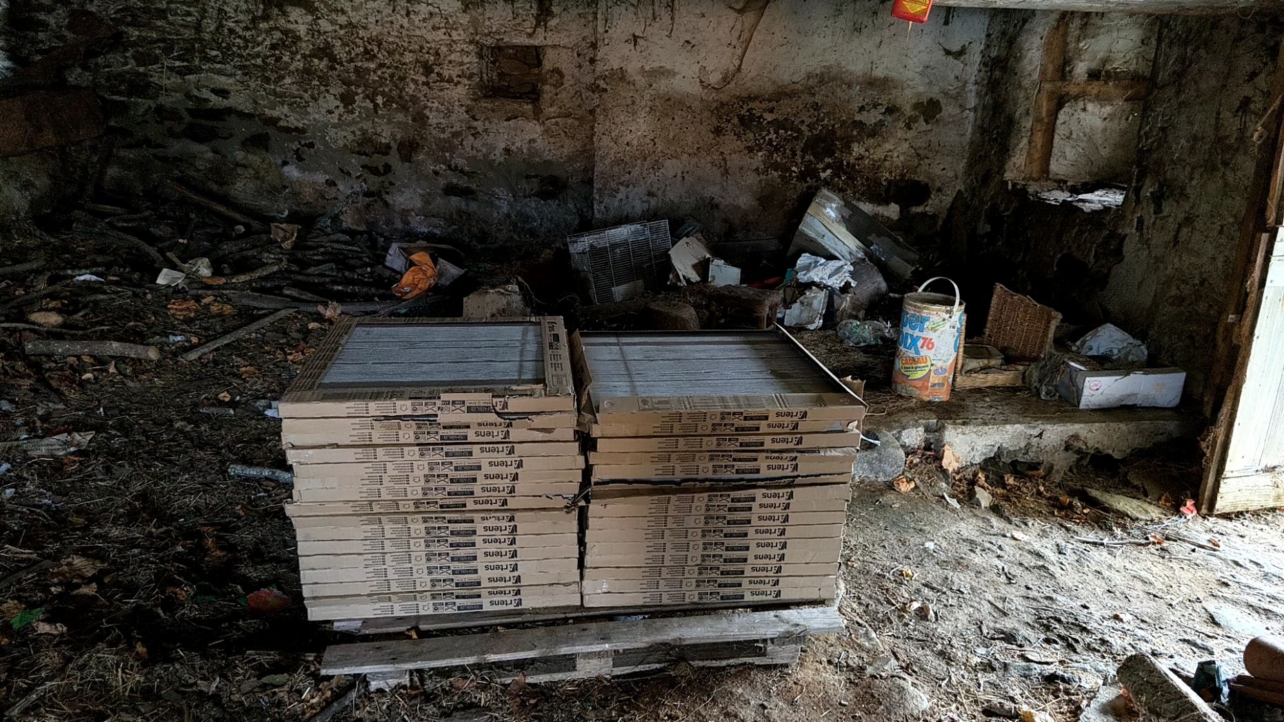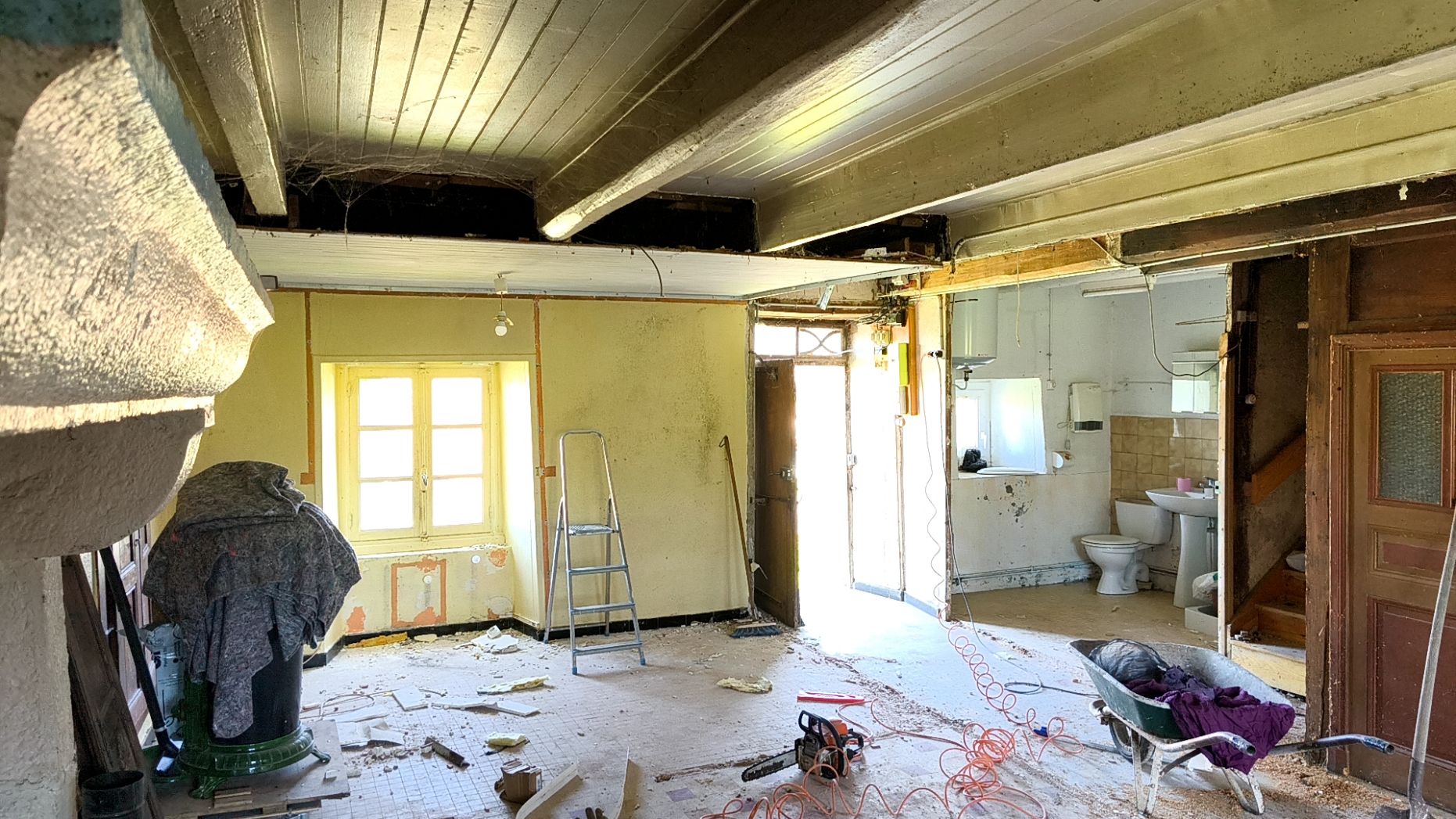 Sur un pignon de la maison se trouve un vieux four à pain dont l'entrée est dans la cheminée située dans ce qui sera la pièce à vivre.