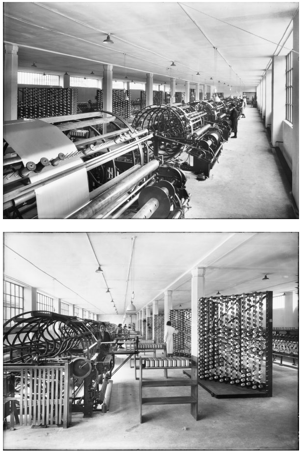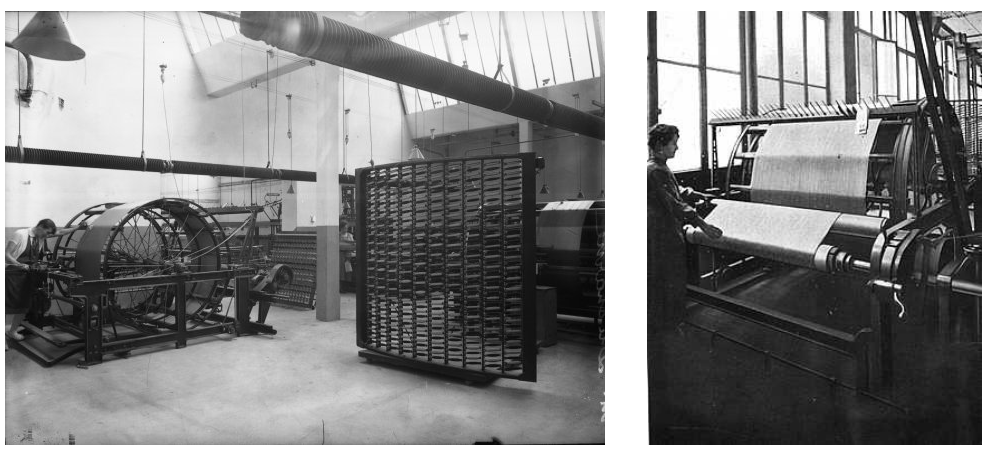 Le pliage à bras demande des manipulations supplémentaires que ne nécessite pas l'ourdissage mécanique puisque la chaîne est pliée sur le rouleau directement à partir du tambour de l'ourdissoir horizontal...