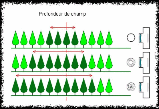 Mais auparavant, abordons une autre notion essentielle, la Profondeur de champ. Les arbres vert foncé sont nets, les arbres vert clair sont flous